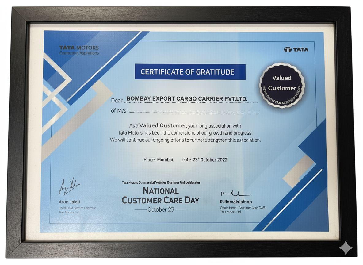 Bombay Export Cargo Carriers is proud to partner with the U.S. Customs and Border Protection. We are part of the C-TPAT (Customs Trade Partnership Against Terrorism) program. This certification validates our rigorous commitment to maintaining a highly secure global supply chain for our Road Transportation, Warehousing, and Consol Hub services, ensuring faster border processing and minimized risk for your cargo. View Our Official C-TPAT Certificate to confirm our dedication to international security and compliance standards.